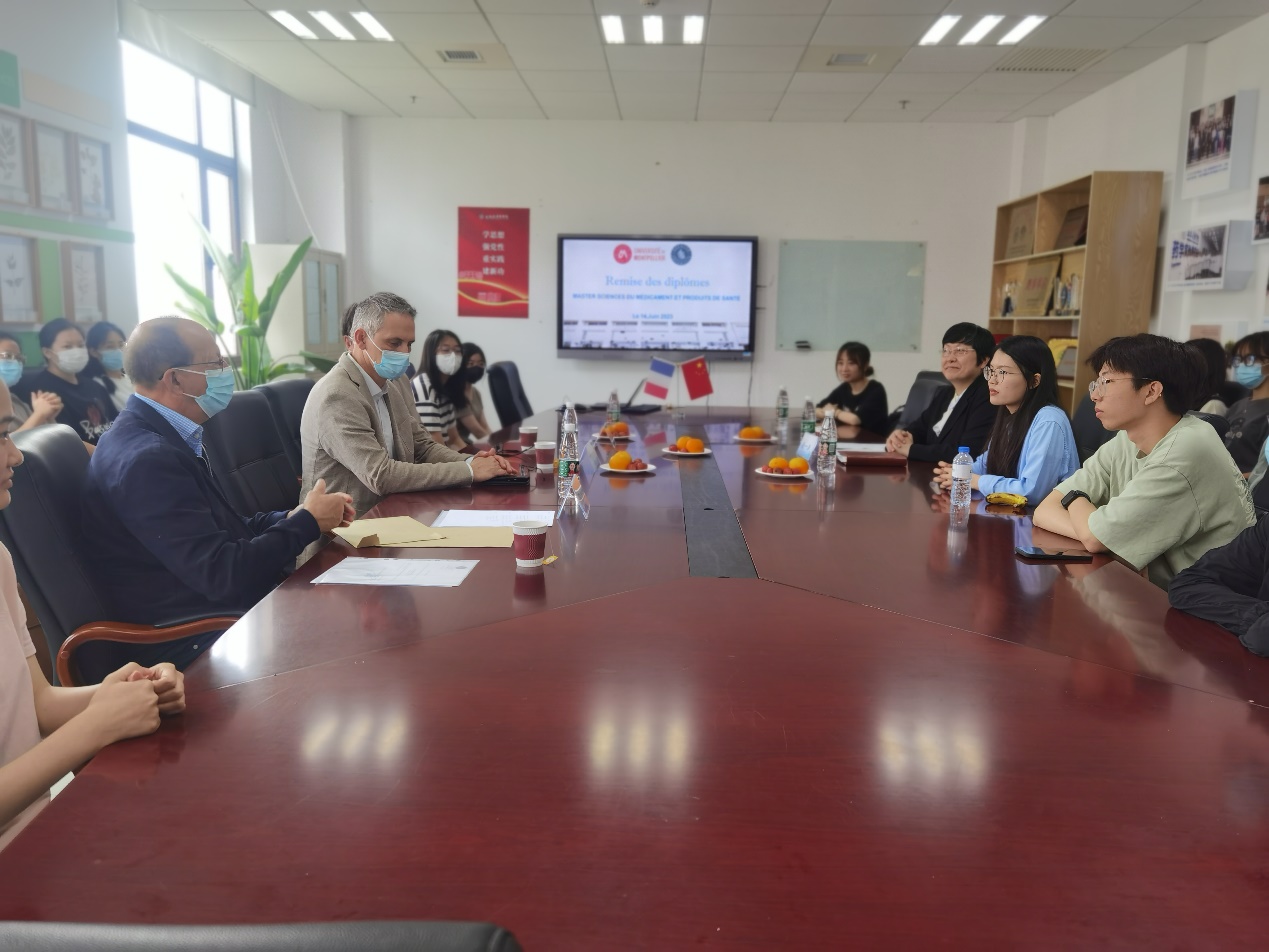 会后,中法合作项目参与学生纷纷表示:有幸与法国蒙彼利埃大学的教授们见面交流,并现场聆听了学长们用流利的法语向教授们汇报国内工作、生活,佩服、羡慕油然而生并深受启发,任何目标的实现都不是一蹴而就的,接下来要以实际行动更加自觉学习,拓展国际视野,提升综合素养,为早日实现梦想、更好服务生物医药行业而不懈努力!