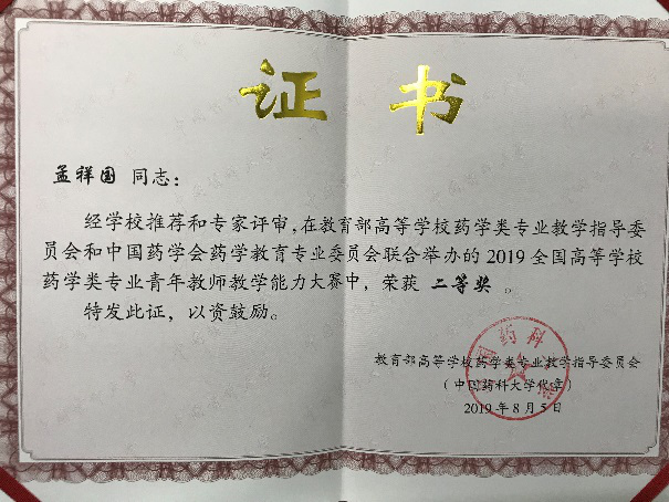 8月5日,孟祥国老师与众多“985”、“211”高校青年教师同台竞技,经过一天紧张的比拼,最终获得2019年高等学校药学类专业青年教师教学能力大赛现场决赛二等奖,实现了零的突破。(亚博取款出账秒到)