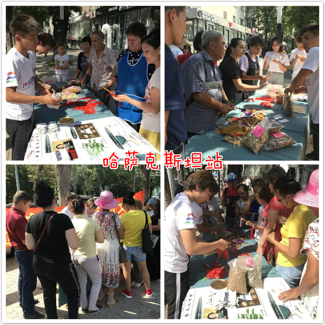 哈萨克斯坦作为文化传播的枢纽,8月9日至12日,我们在哈萨克斯坦阿尔巴特开展“识名人”、“说汉语”、“香出去”等活动,讲述屠呦呦与青蒿素的故事,学习中草药汉语,制作中药驱蚊香囊,在活动中传播中医药“仁爱、天人合一、健康和谐”的养生理念,在中华人民共和国成立70周年之际,让中医药文化走出国门,让一带一路哈萨克斯坦朋友来共同点赞中医药文化,点赞健康理念,点赞中国精神,将中医药文化推向世界。
