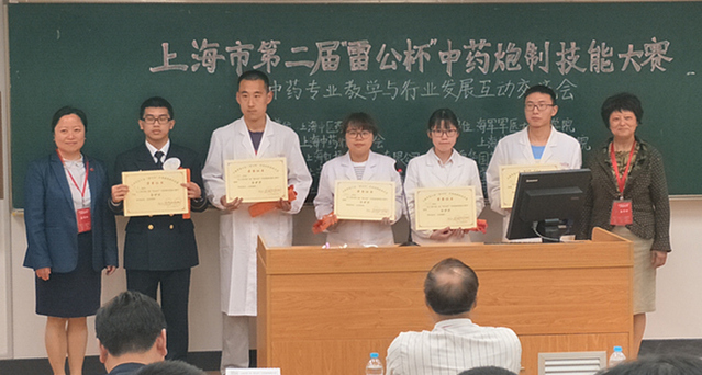 三校共230名选手参加了本次大赛,涵盖药学、中医临床、中药学多个专业及高职、本科、研究生等多个学历层次,经过理论、技能考试几轮角逐,约50名选手进入了决赛。决赛通过中药饮片识别、炮制技术示范和传统炮制技术两个项目来考察选手的技能操作水平。赛场上,选手们全神贯注地展现自我风采,评委们秉承客观公正专业的原则,对选手们的表现给予综合评价与指导,气氛紧张而有序。通过一个下午的激烈角逐,我校杨诗宇同学获得一等奖(金铲奖),李雨洁、朱亦铭同学获得二等奖(银铲奖),张月、唐昀、朱晓云、俞钧杰获得三等奖(铜铲奖),5名同学获得优胜奖,6名同学获得理论知识优胜奖。