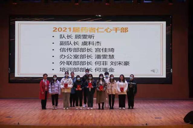 一年来,药者仁心志愿者队在老师和同学们的共同努力下获得了校级优秀志愿者培育基地等荣誉称号,志愿者队指导老师钟旭芬上台对药者仁心志愿者队一年来所做的工作进行了回顾和总结。钟老师向莅临现场的领导与老师们表达衷心感谢,感谢团队里所有同学以及志愿基地老师的付出与努力。“希望每一位同学继续努力,传承奉献、友爱、互助、进步的志愿精神,为社会奉献自己的绵薄之力成为有担当有本领的新时代青年。”