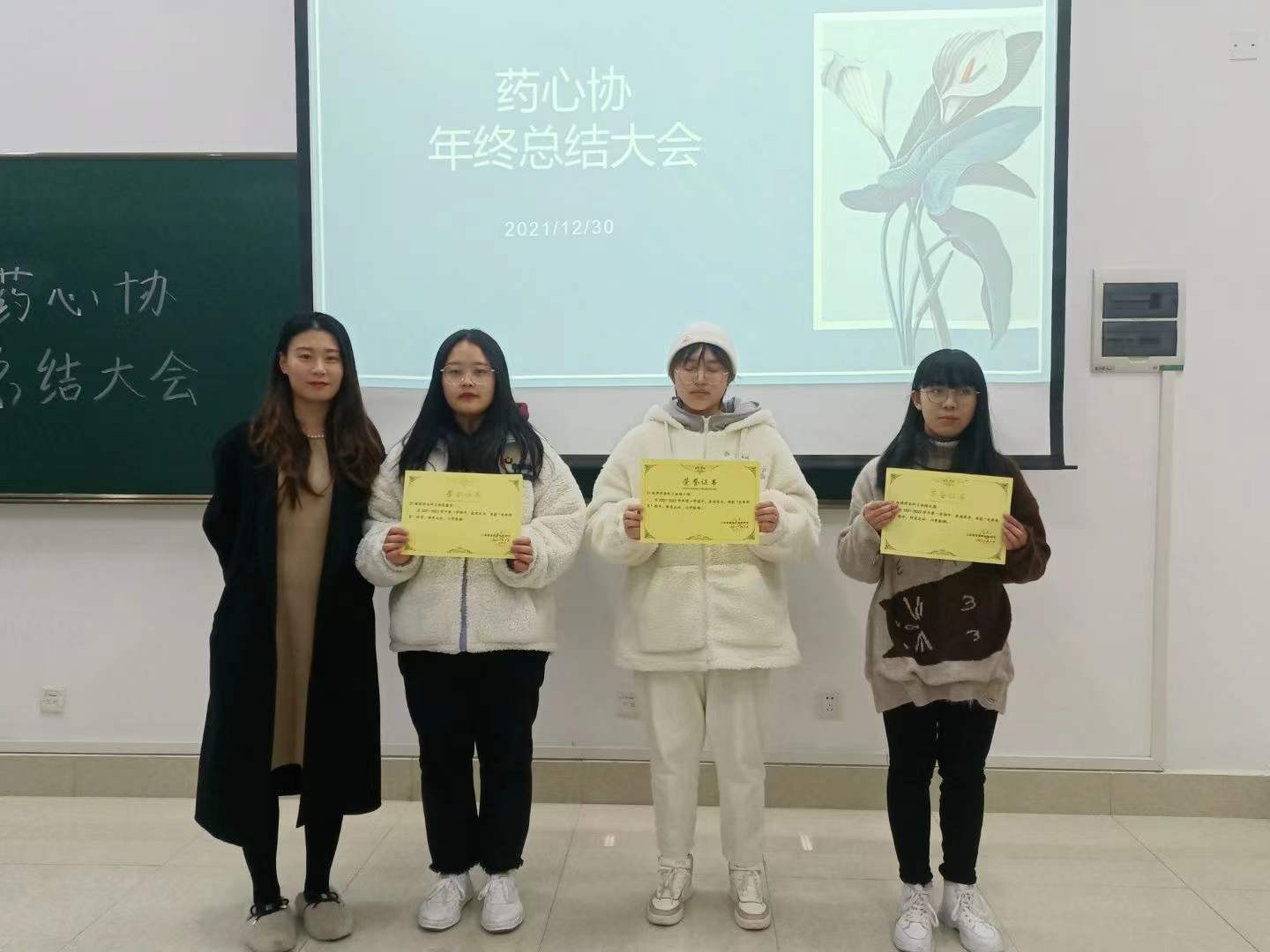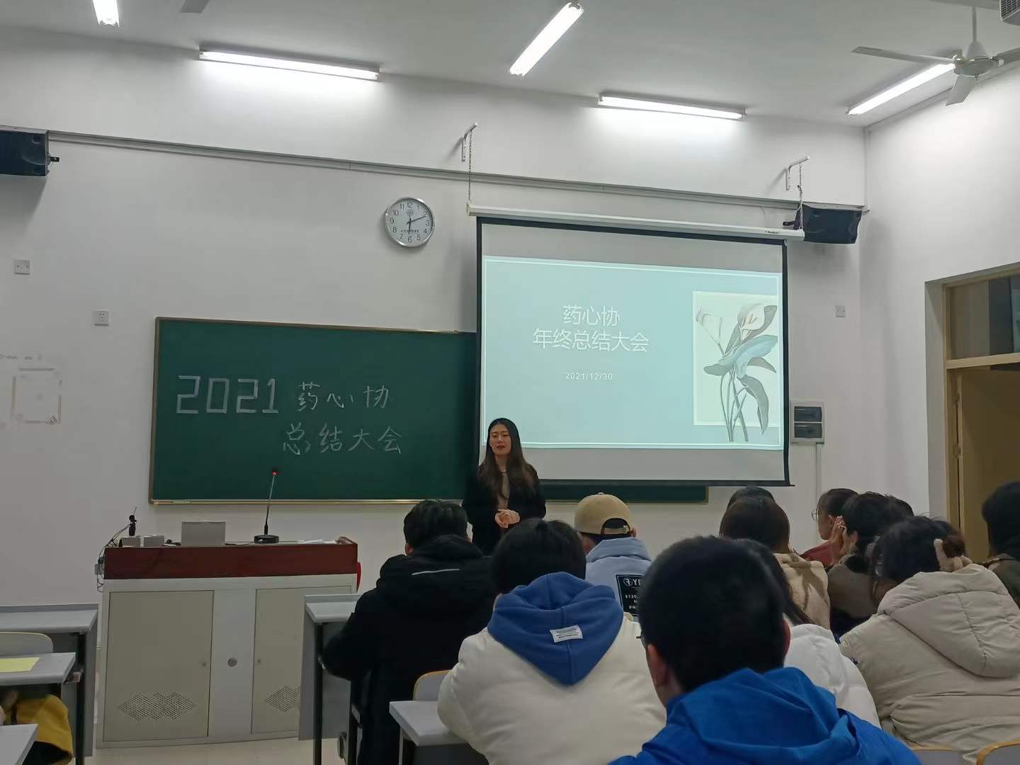 随后,会长姚嘉忆对药心协本学期的工作进行了总结,强调了药心协的宗旨:真诚服务同学,听取每一个声音,实实在在办事。副会长彭世林表示以后要坚持衔接好对各个班级心理委员的工作,了解同学们的心理需求。接着是策划部、传媒部、管理部、组织部各部门部长依次序进行部门的年终述职,优秀部员杨小倩、徐火颜、张鑫芃也进行了关于自己工作的分享和总结。