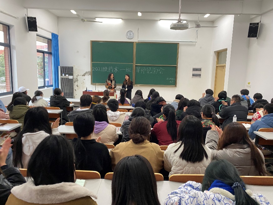 2022年1月4日下午两点四十分,在欢度元旦迎接崭新一年之后,2021级药学本科1班也迎来了本学期首次校内班导师见面会。本次见面会在新南院南楼102教室举行,孔平老师作为班导师,与同学进行了深入交流,同时,出席本次见面会的还有本班辅导员薛诗雯老师。