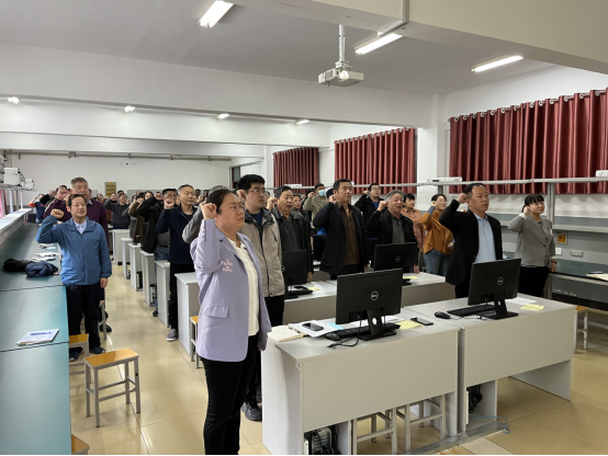 庄严的誓词,质朴的语句,庄重的承诺,诠释着人民教师履职尽责的职业情怀。嘹亮的国歌声激发起全体教师的荣誉感、使命感、责任感,鼓励大家同心同力同向行,共勉共进共担当。