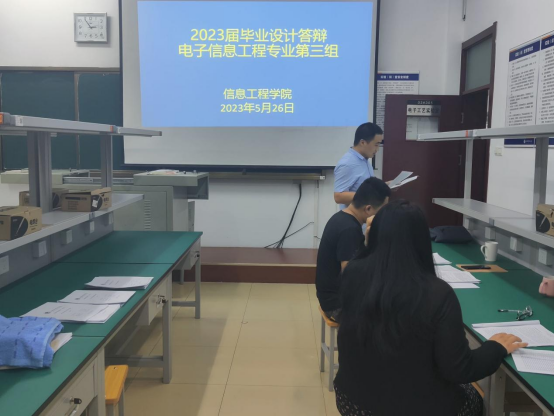 2023年5月26日-28日电子信息工程专业2023届本科毕业生论文答辩在3#教学楼圆满顺利完成。本次论文答辩由肖媛媛院长等多名教授教师组成评审委员会,还特别邀请燕山大学胡正平教授采用线上指导的方式参与指导工作。