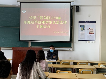 为全面了解我院学生的家庭经济状况,加强对家庭经济困难学生的认定和管理,完善家庭经济困难学生信息档案,切实抓好学院贫困生认定、管理工作。10月14日,我院在22号楼408室召开2020年家庭经济困难学生认定工作专题会议,学院副院长葛宾,科长寇昌斌,干事杨善金、祝莹以及全体辅导员参加了本次会议。