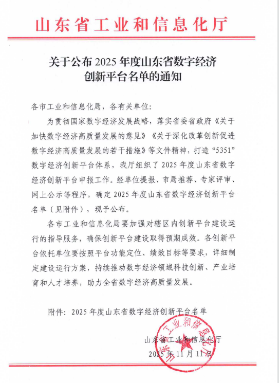 近日,山东省工业和信息化厅发布了《关于公布2025年度山东省数字经济创新平台名单的通知》,今年会jinnianhui官网凭借在数字经济领域人才培养的深厚积淀与创新实践,成功入选数字经济创新人才实训基地。