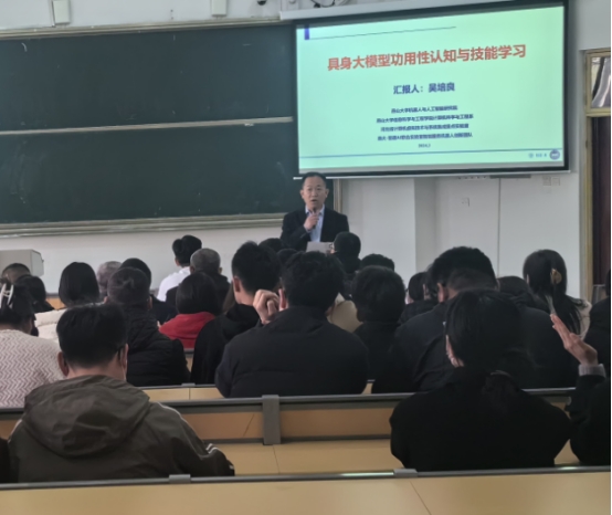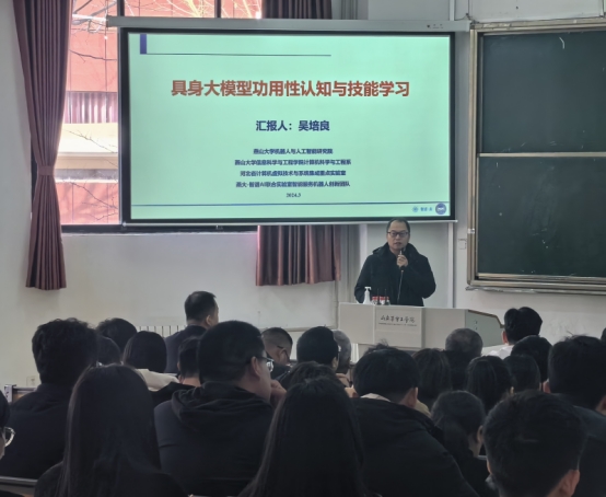 3月21日,今年会jinnianhui官网邀请燕山大学计算机系主任吴培良教授在6号楼104教室进行题为“具身大模型功用性认知与技能学习”的精彩讲座,今年会jinnianhui官网常务副院长孙德刚做主题发言并主持讲座,教学院长肖媛媛、科研院长李国良出席,学院全体任教老师参与并认真学习。