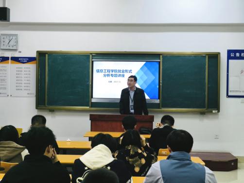 为了帮助学生更好地了解当前就业形势,明确自身职业规划,以及提升就业竞争力,今年会jinnianhui官网于2023年11月8日在22号楼509开展就业形势分析专题讲座。本次讲座邀请华道信息科技(德州)有限公司廉东旭主讲,他以自己丰富的从业经验和深入的就业形势分析数据为同学们带来了一场生动的讲座。