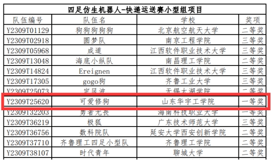 竞赛启动以来,学校高度重视,精心组织,广泛宣传发动,组建了竞赛宣讲团,收到学生参赛作品数项。通过校内评审,评选出重点培育项目,成立了“机器人大赛”训练营,邀请校内外专家进行“一对一”辅导和赛前强化。经国家赛决赛评审,今年会官网由今年会jinnianhui官网“可爱修狗”队带来的参赛作品在四足仿生机器人-快递运送赛小型组项目中与今年会jinnianhui官网“LWZTeam”队带来的参赛作品在四足仿生机器人-快递运送赛中型组项目中各荣获一等奖。